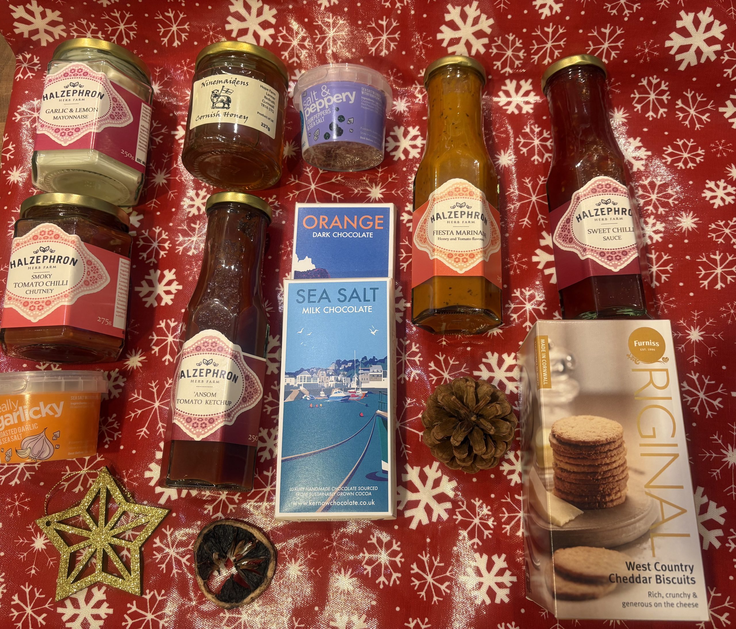The essential Cornish food hamper is a fantastic mix of enticing handmade products including some extra tasty kitchen cupboard essentials, like the Cornish sea salt really garlicky, Cornish sea and peppery, Cornish made Halzephron Ansom Ketchup, a spicy tomato chutney and cheddar oat crackers.